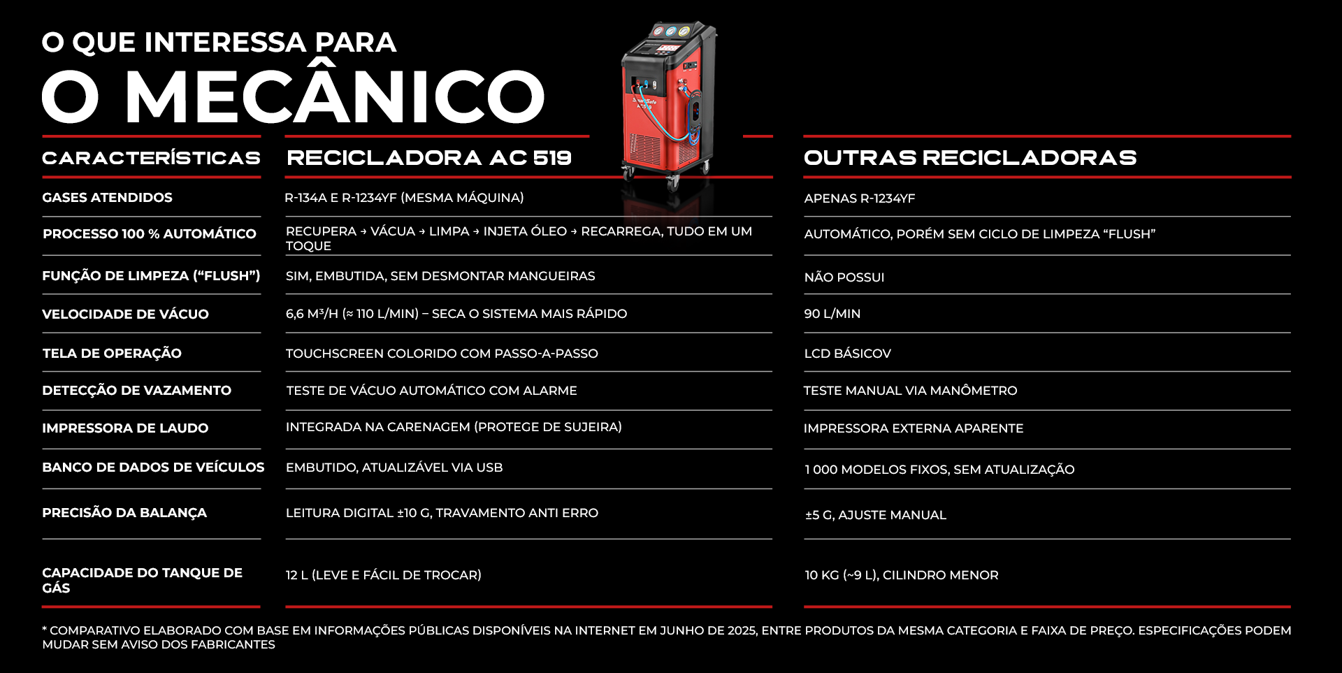 Além disso, a SmartSafe AC519 gera relatórios impressos detalhados, proporcionando mais transparência e credibilidade para oficinas e empresas especializadas em manutenção de ar-condicionado automotivo.